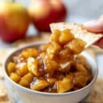 Store the apple dip in an airtight container in the refrigerator for up to 3 days. The chips are best enjoyed fresh but can be kept in an airtight container at room temperature for up to 2 days. Reheat the dip gently on the stove or in the microwave before serving; avoid reheating chips to maintain their crispness.