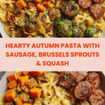 This autumn dinner brings together roasted butternut squash, caramelized Brussels sprouts, savory sausage, and tender pasta in a flavorful garlic butter sauce. It’s a comforting, colorful meal perfect for chilly evenings and seasonal gatherings.