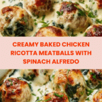 These Baked Chicken Ricotta Meatballs with Spinach Alfredo Sauce offer a deliciously creamy and healthy twist on traditional meatballs. Made with ground chicken, ricotta, and Parmesan, baked to juicy perfection, and served in a rich spinach-infused Alfredo sauce, this dish is perfect for a comforting dinner that’s both satisfying and flavorful.