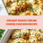 Baked Cream Cheese Chicken is a creamy, savory dish that brings rich flavors to your dinner table with minimal effort. Tender chicken breasts are topped with a luscious cream cheese sauce and baked to perfection, making it a comforting meal the whole family will enjoy.