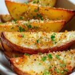 Keywords: baked potato wedges, garlic parmesan potatoes, oven baked potato recipe, crispy potato wedges, Italian seasoning potatoes, easy side dish, vegetarian potato recipe