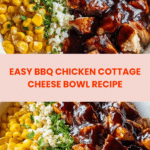 A wholesome and flavorful BBQ Chicken Cottage Cheese Bowl featuring tender shredded BBQ chicken breast served over a base of cooked quinoa and creamy low-fat cottage cheese, topped with fresh cherry tomatoes, sweet corn, avocado slices, and a bright cilantro-lime garnish. This protein-packed bowl balances smoky, savory, creamy, and fresh elements for a nutritious and satisfying meal perfect for lunch or dinner.