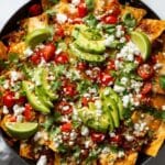 - Garnish and Serve: Remove the skillet from the oven. Sprinkle with the dark green parts of sliced green onions, fresh cilantro, diced tomatoes, and diced or sliced avocado. Serve warm with dollops of sour cream if desired.