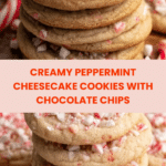 Keywords: peppermint cheesecake cookies, chocolate chip cookies, holiday cookies, peppermint extract cookies, creamy cheesecake cookies, festive cookies