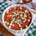Keywords: scalloped sweet potatoes, sweet potato casserole, holiday side dish, buttery sweet potatoes, marshmallow topping, pecan topping