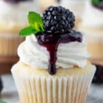 Store the cupcakes in an airtight container in the refrigerator for up to 3 days. Let them come to room temperature before serving for the best flavor and texture. The blackberry filling may slightly thicken in the fridge. Alternatively, freeze unfrosted cupcakes for up to 2 months and frost after thawing.
