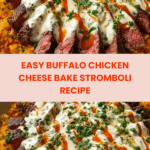 A delicious and spicy Chicken Cheese Bake featuring tender cooked chicken tossed in buffalo wing sauce and ranch dressing, rolled inside a pizza dough with melted mozzarella and cheddar cheeses. Baked until golden and bubbly, this hearty stromboli-style dish offers a perfect blend of creamy, cheesy, and tangy flavors ideal for game days or cozy dinners.