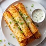 - Serve & Enjoy: Arrange the crispy buffalo chicken taquitos on a serving platter. Optionally drizzle with extra buffalo sauce and garnish with additional chives or crumbled blue cheese. Serve alongside the prepared dip and enjoy immediately while hot.