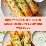 These Buffalo Chicken Taquitos are crispy, spicy, and packed with bold flavors. Made with shredded chicken tossed in tangy buffalo sauce, cheddar cheese, and warming spices, then rolled in warm corn tortillas and fried to golden perfection. Served with a cooling Greek yogurt dip, they make an irresistible appetizer or snack perfect for game day or a casual gathering.