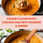 This Cajun White Chicken Chili is a flavorful twist on traditional chili, combining tender chicken, spicy andouille sausage, and succulent shrimp in a creamy, seasoned broth. It’s perfect for anyone craving a warming meal with a bit of a kick.