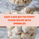 Cake Batter Puppy Chow is a fun and sweet twist on the classic snack mix, combining crispy cereal with white chocolate and festive sprinkles. It’s perfect for parties, holiday treats, or just a delightful homemade snack.