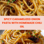 Caramelized Onion Pasta with Chili Oil is a flavorful and comforting Italian-inspired dish featuring sweet, slow-cooked onions paired with spicy, aromatic chili oil. The dish combines perfectly cooked pasta with a glossy, spicy oil and savory caramelized onions, finished with creamy Parmesan and fresh herbs for a balanced, delicious meal.
