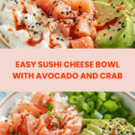 Store the Sushi Cheese Bowl in an airtight container in the refrigerator for up to 4 days. For best flavor and texture, avoid adding avocado until right before serving if you plan to store it. Reheat is not recommended; enjoy it cold or at room temperature.