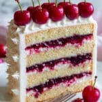 Keywords: Cherry Layer Cake, Cream Cheese Frosting, Cherry Cake, Layer Cake, Fresh Cherry Dessert, Baking, Cherry Filling