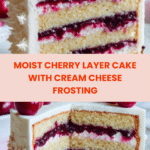 This Cherry Layer Cake with Cherry Cream Cheese Frosting is a delightful, moist cake featuring layers of tender vanilla sponge filled and frosted with a rich, tangy cherry-infused cream cheese frosting. Beautifully enhanced with fresh or preserved cherries in both the cake batter and a luscious cherry filling, this dessert is perfect for celebrations or any special occasion.