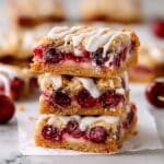Delicious Cherry Pie Bars featuring a buttery crumbly crust layered with sweet cherry pie filling, topped with a delicate almond-vanilla glaze. These bars offer the classic flavors of a cherry pie in an easy-to-make, portable dessert perfect for any occasion.
