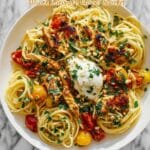 PrintChicken Spaghetti with Burrata and Lemon Butter Garlic Sauce Recipe