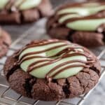 Delight in these rich and festive Chocolate Mint Thumbprint Cookies featuring a soft cocoa cookie base, filled with a creamy mint-infused white chocolate fudge center, and finished with a drizzle of melted chocolate almond bark. Perfectly balanced with a hint of mint and a luscious texture, these cookies make a delightful treat for the holidays or any special occasion.