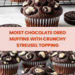 Delight in these decadent Chocolate Oreo Muffins featuring a rich cocoa-flavored batter studded with chunks of Oreo cookies and topped with a crunchy Oreo streusel. Perfect for breakfast, snacks, or dessert, these muffins combine moist texture with a delightful crunch.