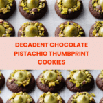 Delight in these decadent Chocolate Pistachio Cream Thumbprints, a perfect blend of rich cocoa-infused cookies paired with a luscious pistachio and white chocolate filling. These thumbprint cookies offer a tender, buttery texture, lightly crunchy pistachio coating, and a creamy center, making them an irresistible treat for any occasion.