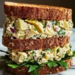 This Chopped Artichoke Salad Sandwich is a light and flavorful vegetarian option perfect for a quick lunch or picnic. The creamy artichoke filling combines savory mayonnaise, tangy Dijon mustard, fresh lemon juice, and crunchy shallots with optional extras like celery and capers, all piled on toasted bread with fresh greens and optional cheese for added richness.