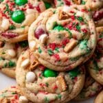 Christmas Kitchen Sink Cookies are a festive treat packed with a delightful mix of sweet, salty, and crunchy ingredients. Loaded with colorful M&M’s, white chocolate, pretzels, potato chips, and sprinkles, these cookies bring holiday cheer with every bite.