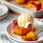 Delight in the warm, comforting flavors of Cinnamon Sugar Baked Peaches, a simple and elegant dessert featuring ripe peaches baked with a fragrant blend of cinnamon, nutmeg, cloves, and brown sugar. Topped with a dollop of butter and served with vanilla ice cream, this dessert is perfect for a cozy evening or a special occasion.