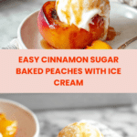 Keywords: baked peaches, cinnamon sugar peaches, baked fruit dessert, easy peach dessert, fall dessert, cinnamon dessert