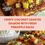 This Coconut Crusted Salmon with Pineapple Salsa is a vibrant and flavorful dish that combines crispy, tropical-coated fish with a fresh, zesty salsa. It’s easy to prepare and brings a wonderful balance of sweet, spicy, and savory notes perfect for a weeknight dinner or special occasion.