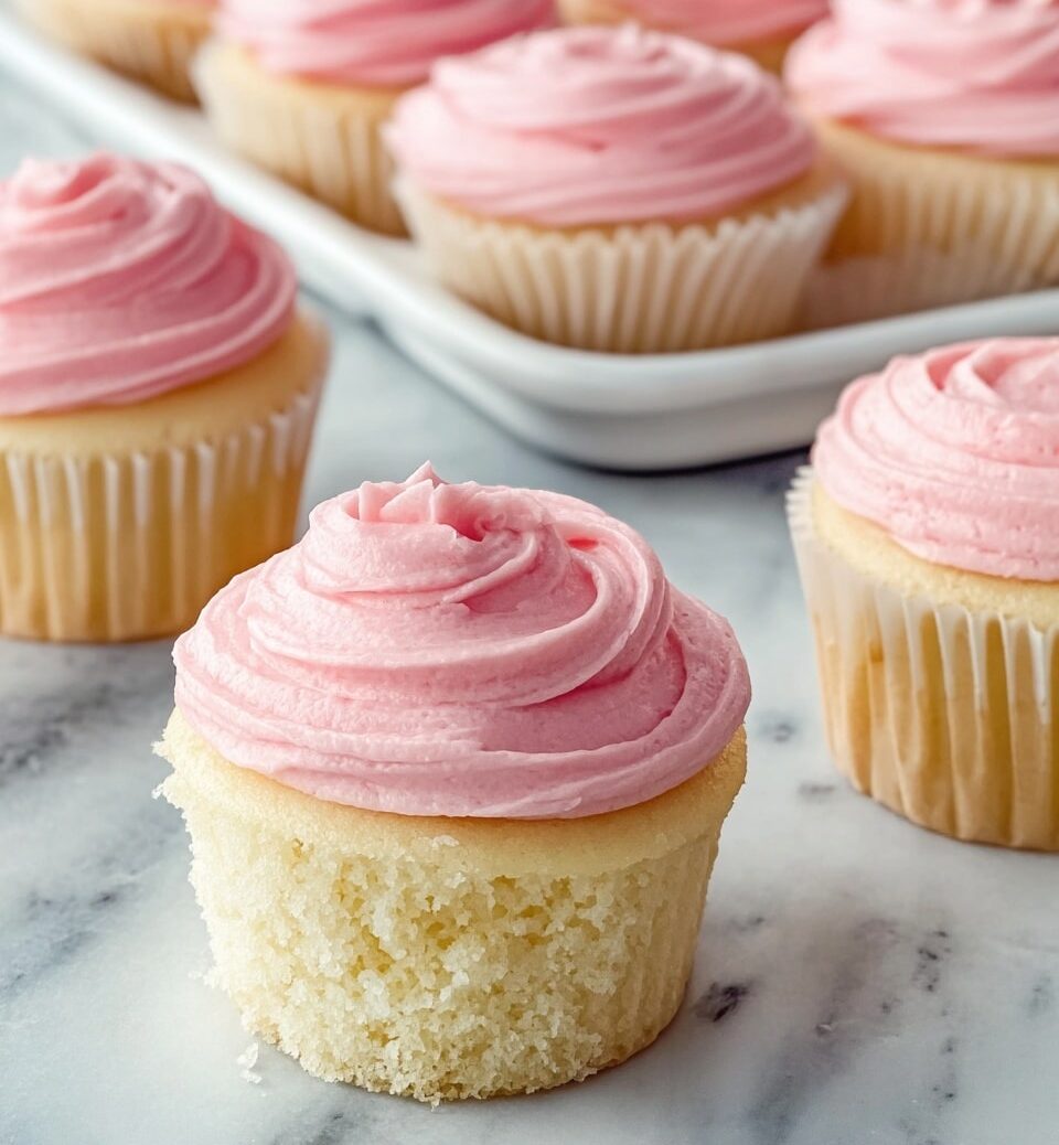 Keywords: Magnolia Bakery cupcakes, copycat cupcakes, classic vanilla cupcakes, buttercream frosting, pink frosted cupcakes, bakery style cupcakes