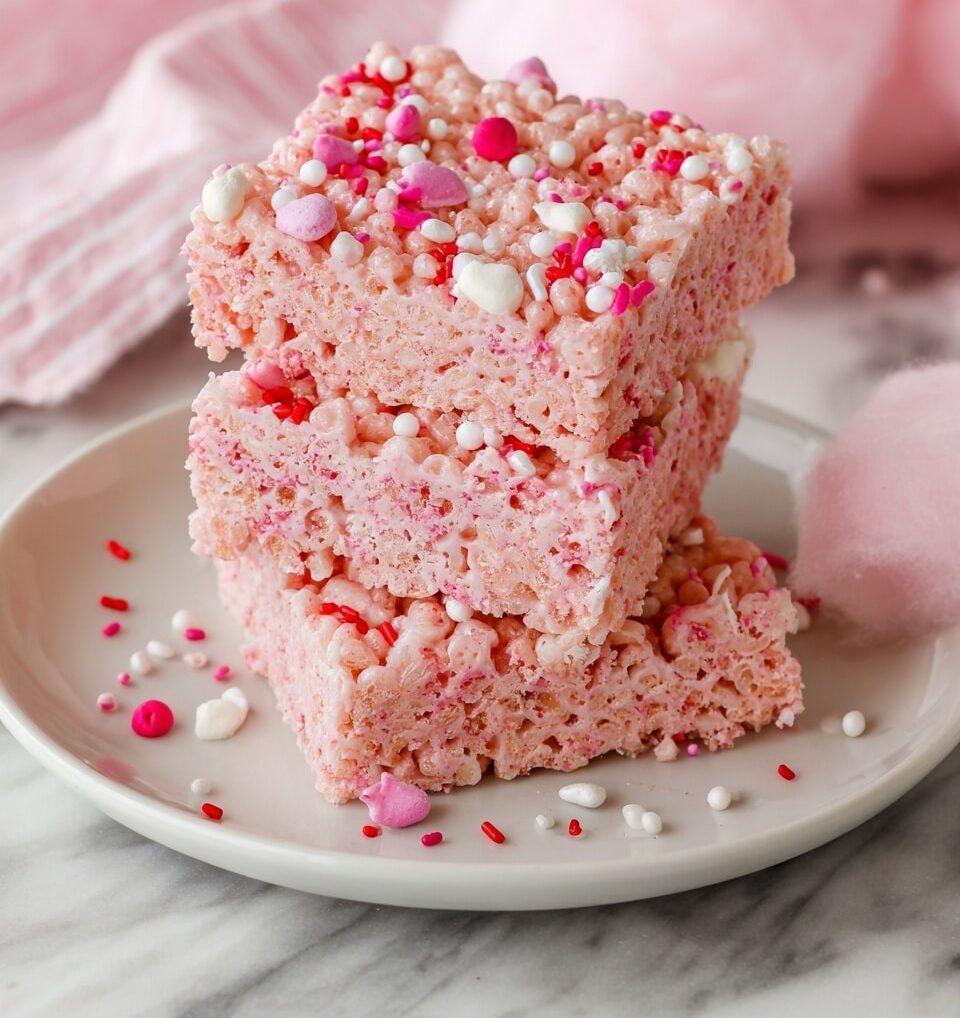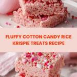 Indulge in the whimsical sweetness of Cotton Candy Rice Krispie Treats, a fun and colorful twist on the classic snack. This recipe combines melted marshmallows, rich butter, and delicate pink cotton candy for an irresistible fluffy texture and delightful flavor. Mixed with crunchy strawberry-flavored Rice Krispies and topped with festive pink and white sprinkles, these treats are perfect for parties, special occasions, or just a playful sweet snack.