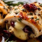 This Cranberry Brie Stuffed Chicken recipe features tender boneless, skinless chicken breasts stuffed with creamy Brie cheese and tangy cranberry sauce, then seared to golden perfection and baked in the oven. It’s a flavorful and elegant dish perfect for a holiday meal or any special occasion.