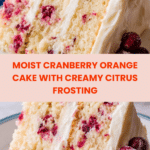 Keywords: cranberry orange cake, layered cake, cream cheese frosting, holiday cake, citrus cake, festive dessert