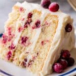Keywords: cranberry orange cake, layered cake, cream cheese frosting, holiday cake, citrus cake, festive dessert
