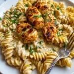 PrintCreamy Garlic Parmesan Chicken with Cheesy Twisted Pasta Recipe