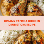 This Creamy Paprika Chicken Drumsticks recipe features tender chicken drumsticks roasted to golden perfection and smothered in a rich, flavorful sauce made with smoked paprika, garlic, onion, cream, and fresh herbs. Served over fluffy white rice, this comforting dish perfectly balances smoky, creamy, and savory elements for a satisfying meal that’s easy to prepare and sure to please the whole family.