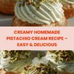 Pistachio cream is a luscious, nutty spread that’s perfect for desserts or as a flavorful addition to pastries. With a smooth texture and rich taste, it brings a delightful twist to your sweet treats. This recipe is simple and yields a beautifully vibrant cream.