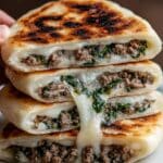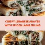 Crispy Lebanese Arayes are stuffed pita pockets filled with a fragrant mixture of ground lamb, aromatic spices, fresh herbs, and a touch of tomato, grilled to golden perfection. This flavorful Middle Eastern dish is enhanced with optional Gruyere cheese and a touch of sweet Raos Sauce, making it a delicious fusion of Levantine and European flavors. Perfect as a hearty appetizer or a satisfying main dish, these pita pockets deliver a crispy crust with a juicy, savory filling.