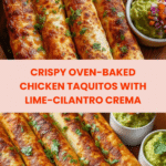 These Crunchy Oven-Baked Chicken Taquitos feature tender shredded chicken mixed with salsa verde and melted Monterey Jack cheese, rolled inside warm corn tortillas, coated with seasoned panko breadcrumbs, and baked to a golden crisp. Served with a tangy lime-cilantro crema, this recipe offers a perfectly balanced bite of spicy, melty, and crunchy textures ideal for a satisfying appetizer or snack.