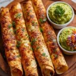 These crunchy oven-baked chicken taquitos combine tender shredded chicken with bright salsa verde and melty cheese, all wrapped in corn tortillas and coated with a crispy panko crust. Baked to golden perfection, they’re a satisfying snack or meal perfect for sharing with family and friends.