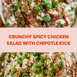 This Crunchy Spicy Chicken Salad is a perfect blend of tender chicken and crisp vegetables, all tossed in a zesty, smoky dressing. It’s quick to make and versatile, ideal for sandwiches, wraps, or enjoying with your favorite chips. The chipotle pepper sauce adds a delightful kick that’s sure to please spice lovers.