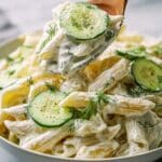 Keywords: Cucumber pasta salad, creamy pasta salad, summer salad, dill dressing, easy pasta salad, side dish