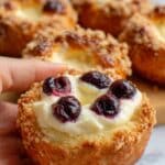 Danish Carnival Buns with Vanilla Cheesecake Delight are soft, fluffy buns filled with a creamy vanilla cheesecake mixture and topped with a luscious blueberry compote and crumbly streusel. These delightful buns combine tender dough, rich cheesecake filling, fresh blueberry topping, and a crunchy crumbly finish perfect for a festive breakfast or dessert treat.
