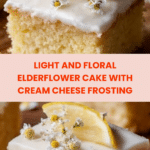 Keywords: Elderflower cake, floral cake, lemon cake, cream cheese frosting, spring dessert, British cake recipe