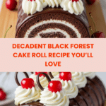 Discover the delight of a classic Black Forest Cake Roll, blending rich chocolate sponge, luscious cherry cream filling, and silky ganache. This elegant dessert is perfect for special occasions or a sophisticated treat at home.