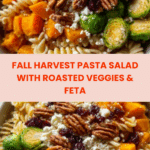 This Fall Harvest Pasta Salad is a delightful mix of autumn flavors and textures. Roasted butternut squash and Brussels sprouts blend perfectly with tart cranberries, crunchy pecans, and creamy feta, making it a seasonal favorite that’s both colorful and satisfying.