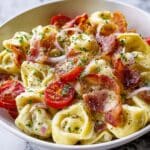 Keywords: tortellini salad, bacon tortellini salad, cheese tortellini recipe, cold pasta salad, easy Italian salad, creamy tortellini salad