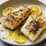 This Golden Seared Cod with Herb Butter Sauce recipe offers a flavorful and elegant seafood dish featuring perfectly seared cod fillets topped with a fragrant herb butter sauce made with fresh parsley, dill, and chives. Quick to prepare and ideal for a weeknight meal or special occasion, it highlights the delicate texture of cod paired with the richness of butter and the brightness of lemon and herbs.