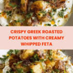 This Greek Roasted Potatoes and Whipped Feta recipe offers crispy, aromatic roasted potatoes infused with lemon, garlic, and herbs, paired with a creamy and tangy whipped feta dip. The potatoes are parboiled then roasted to perfection with a honey-chili glaze, complemented by a smooth whipped feta made from feta cheese, Greek yogurt, and lemon zest and juice. It’s a flavorful side dish or appetizer inspired by Mediterranean cuisine.