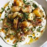 Keywords: Greek roasted potatoes, whipped feta, roasted lemon potatoes, Mediterranean side dish, garlic roasted potatoes, lemon herb potatoes, honey chili glaze